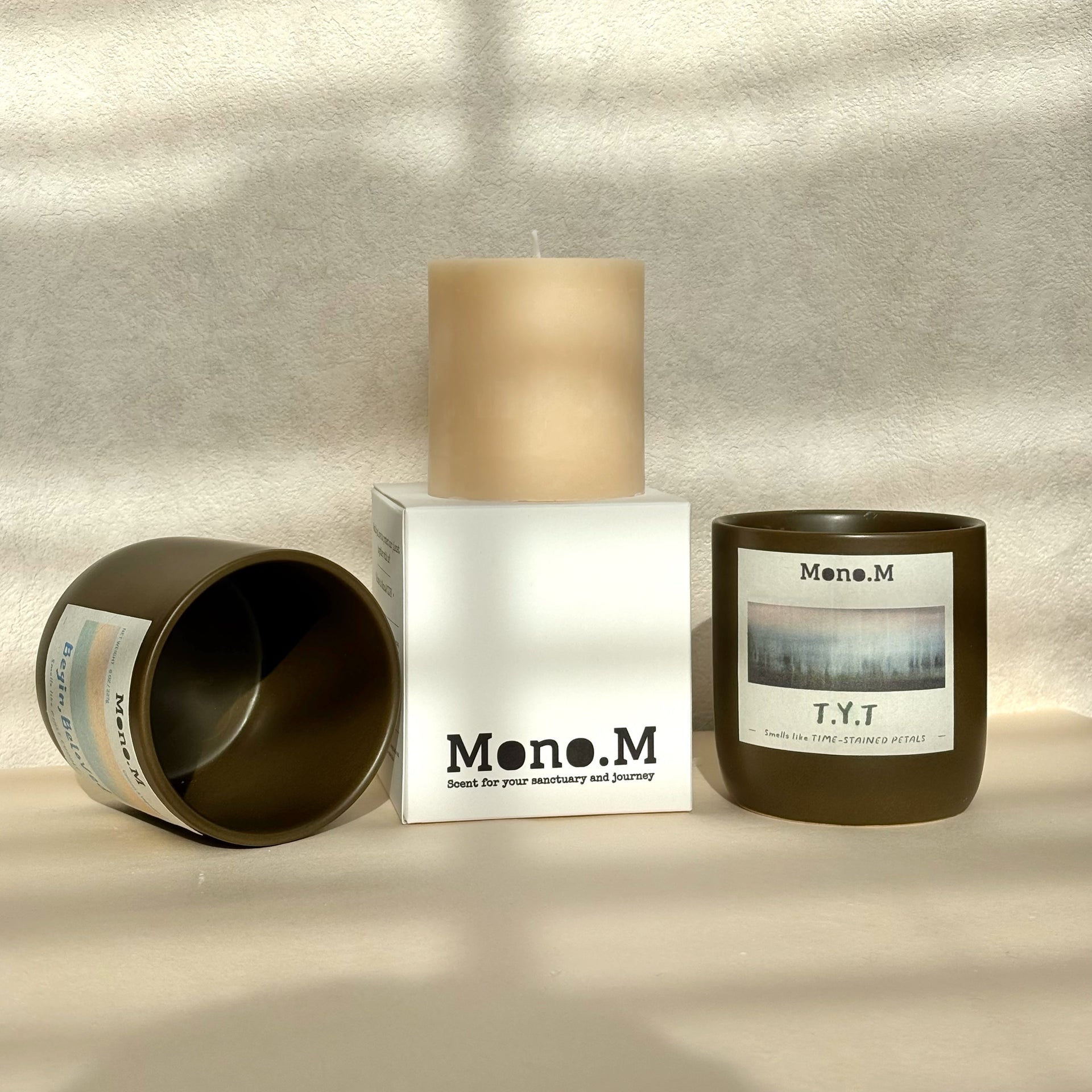 Our candle vessels, crafted by professional artisans we carefully select, embody the warmth of true craftsmanship. Each vessel features an ergonomic curved design for a secure grip, combining elegance with functionality. The vessels stay cool and safe while being moved. This design reflects Mono.M's core concept: that everyone's unique characteristics and edges are beautiful.