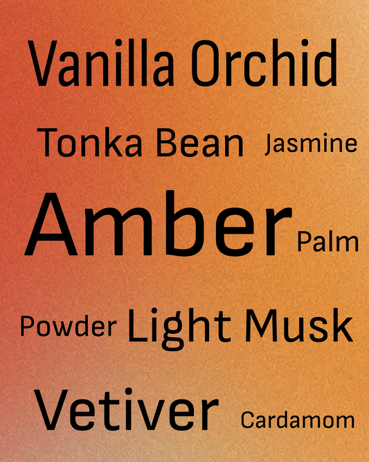 Base: Amber & Musk, Cedarwood & Vetiver, Creamy Vanilla, Powder